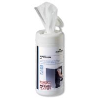Superclean wipes are moist lint-free wipes soaked in alcohol-free cleaning liquid. For use on computer housings printers and other office equipment. Handy dispenser tub.
