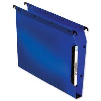 Organise your documents and reports in these durable polypropylene lateral suspension files; ideal for shelves. The reinforced 30mm base can hold several loose sheets or folders; and the steel metal bars hold the file securely on the rail. Side positioned label holders make it quick and easy to identify the files contents and retrieve them from shelf. The ultimate archiving essential.