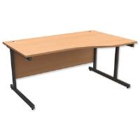 Right-hand wave desk will accept fixed pedestals on the non-handed side
