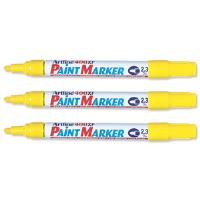 Highly permanent xylene free paint markers. 2.3mm bullet tip with valve action nib for controlled ink flow. Ideal for indoor or outdoor use. Yellow.